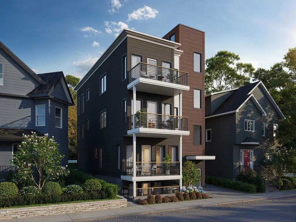 Your chance to own a thoughtfully designed new construction residence in one of Somerville’s most connected neighborhoods. This 2,382 sq ft bi-level home offers 3 beds & 3.5 baths designed for comfort & everyday living. The main level showcases an open concept layout anchored with 10' ceiling, a spacious living &dining area & a stunning kitchen with Fisher & Paykel appliances, quartz countertops & a mix of warm wood & crisp white cabinetry. Floor-to-ceiling Marvin windows fill the space with natural light & extend to a private deck, ideal for relaxing or entertaining. A private primary suite is tucked just off the main living area with a luxurious bath and walk-in closet, while a bright guest bedroom and powder complete this floor. Downstairs, a spacious family room opens directly to the patio for seamless indoor-outdoor living, along with a junior suite and additional office. Set within a boutique building just moments from Davis Square, the Green Line Extension & the Community Path.